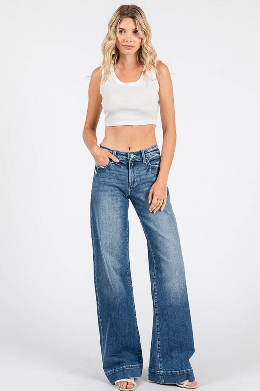 MID RISE STRETCH TROUSER WIDE LEG JEANS