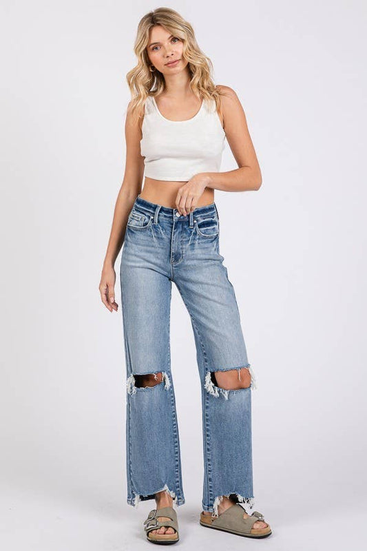 HIGH RISE STRETCH SLIM WIDE LEG W/ DESTROYED HEM